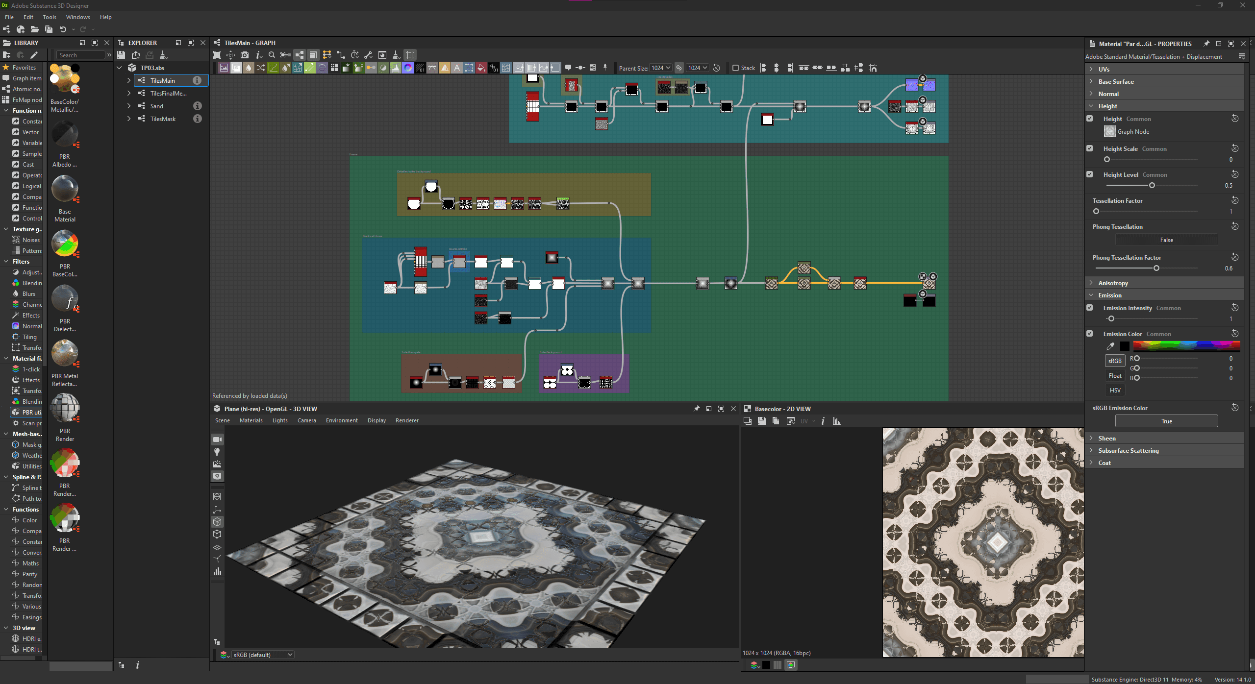 From a technical point of view, my plan was to create a procedural material where the user could control the level of damage: from slightly worn tiles to heavily fractured and displaced ones, revealing the rubble or dirt underneath.